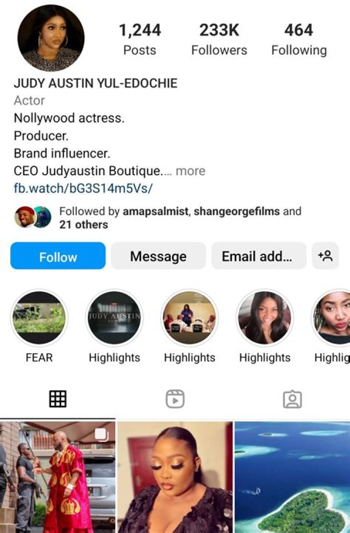 Judy’s true Instagram profile says that she has as of late adjusted her Instagram bio to add the name of her mate, Yul Edochie.