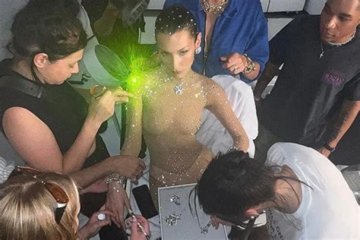 Bella Hadid Wears Crystal-Covered Nude Catsuit in Behind-the-Scenes Swarovski Pics — See Her Look!