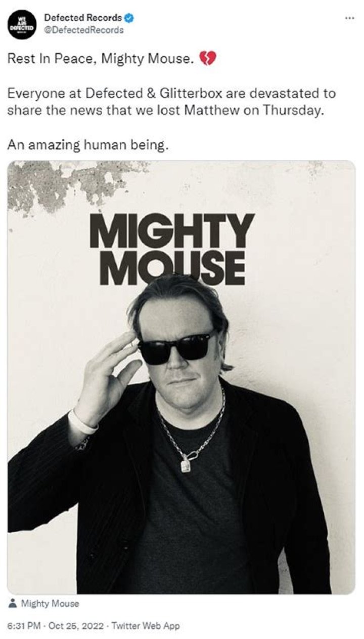 DJ Strong Mouse whose genuine name is Matthew Ward has died at 48 years old as a music maker. He experienced an aortic aneurysm. A post delivered by the UK name on Tuesday, October 25 peruses “We are crushed to affirm that Matthew Ward otherwise known as Powerful Mouse, died out of nowhere last Thursday at his home in Spain.