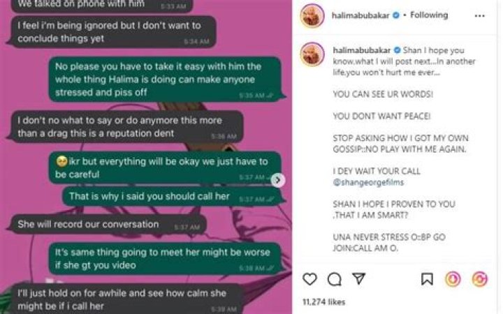 Shan George’s discussion with a unidentified individual was caught in a new post that Halima Abubakar transferred on her confirmed Instagram page. The article examined what is said to have been a discussion between Shan George and the individual who encouraged him to phone Halima Abubakar as opposed to going to her home.