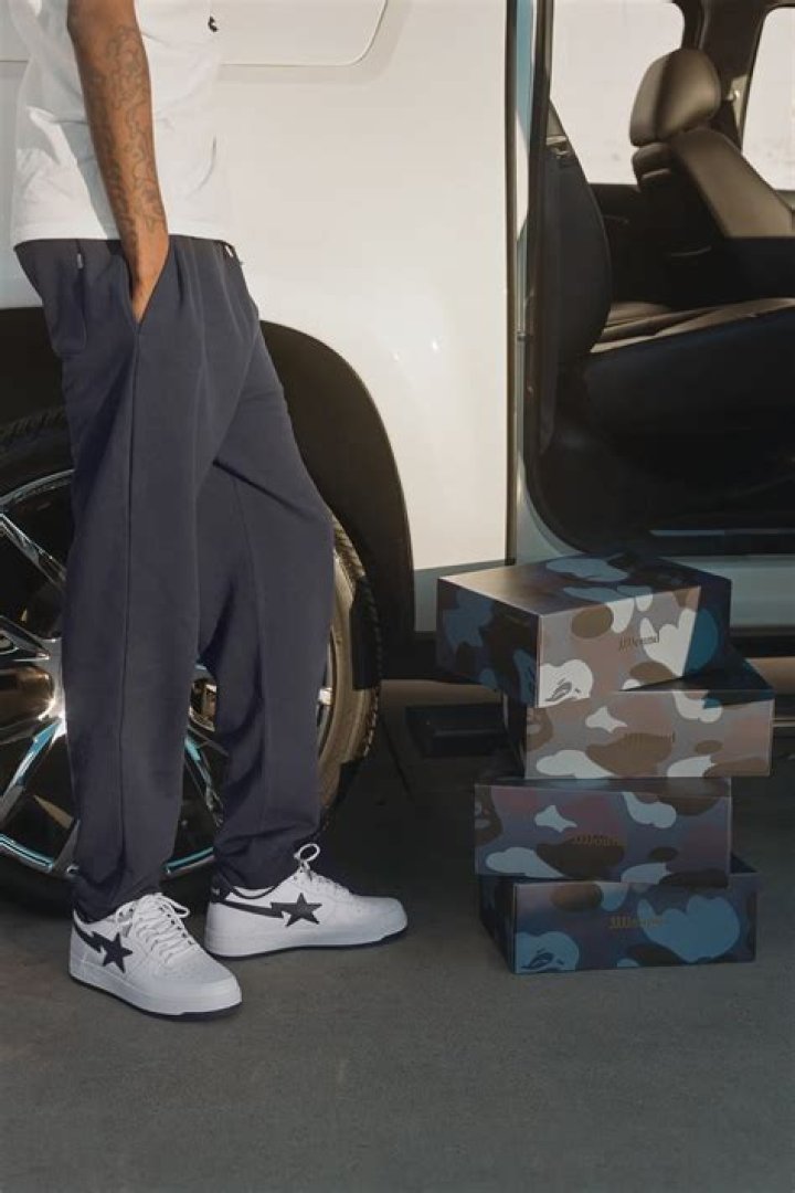 JJJJound x BAPE STA collab shoes will be wearing a white and naval force group with comparable clothing things
