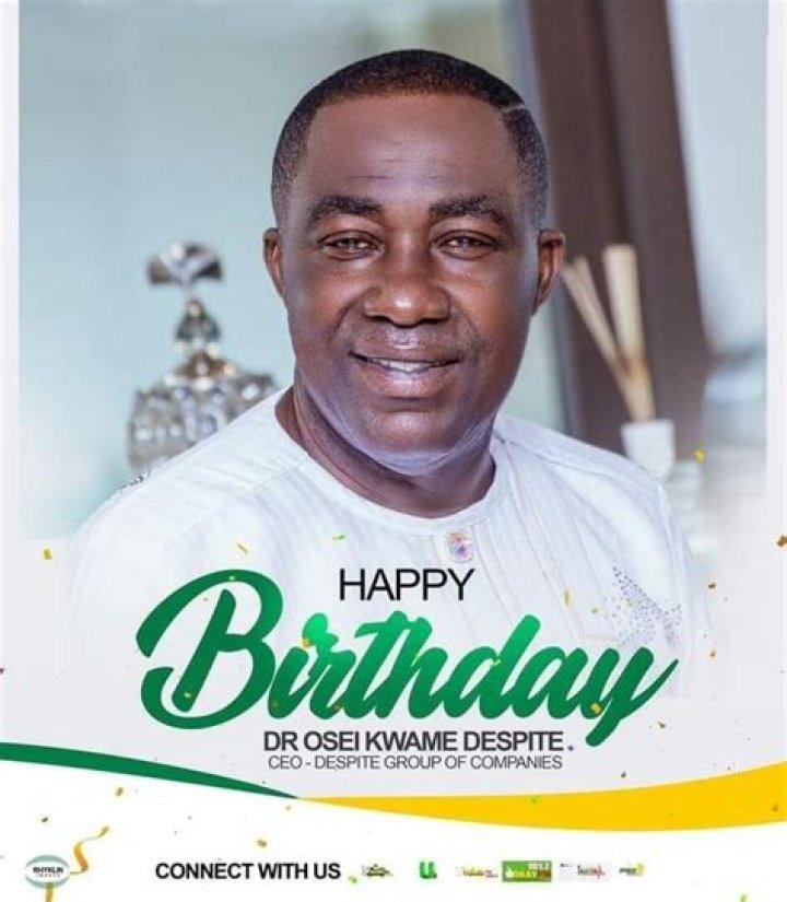 However he has a record on Facebook under the username @Dr.Osei Kwame Despite, with 589k supporters. A large portion of his pay is from his private interest in Despite Group of organizations.