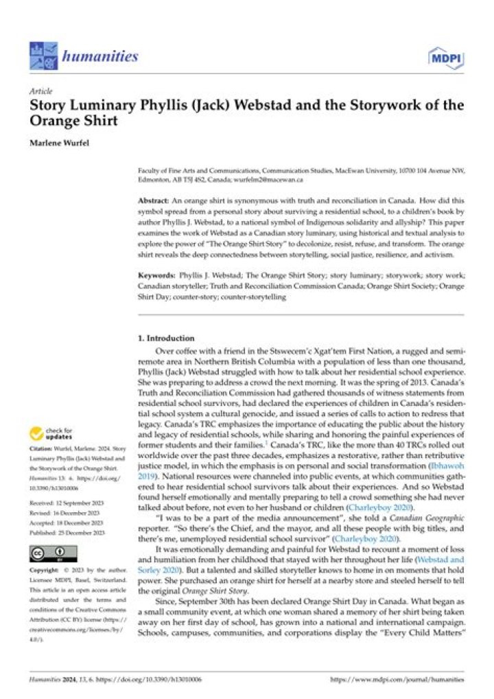 Phyllis got the 2017 TRU Distinguished Alumni Award for her remarkable impact on nearby to worldwide organizations by sharing her orange shirt story.